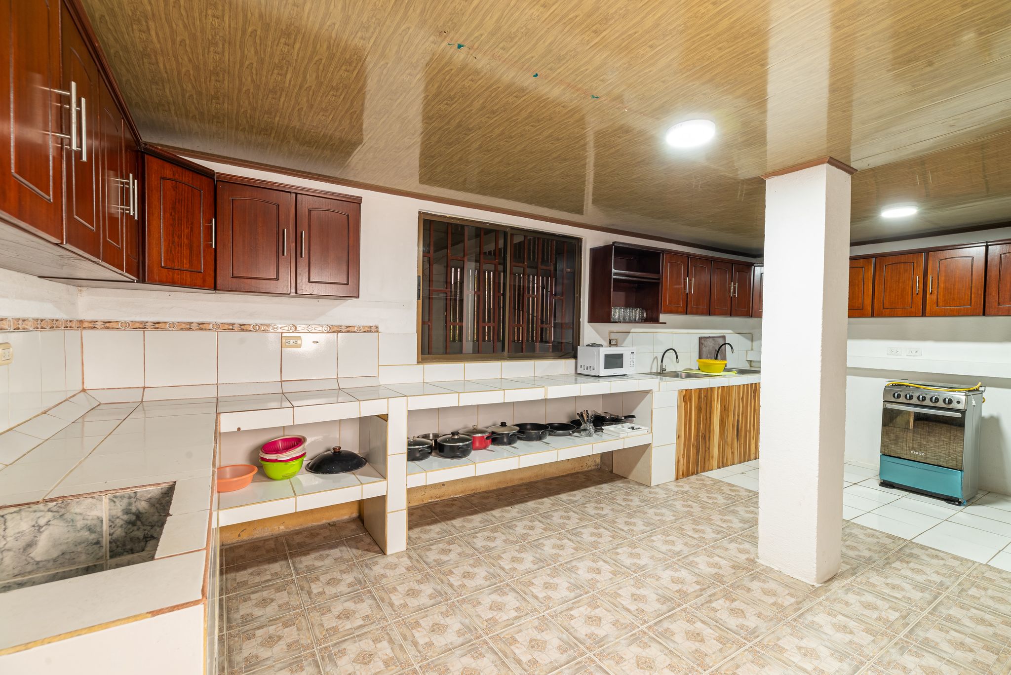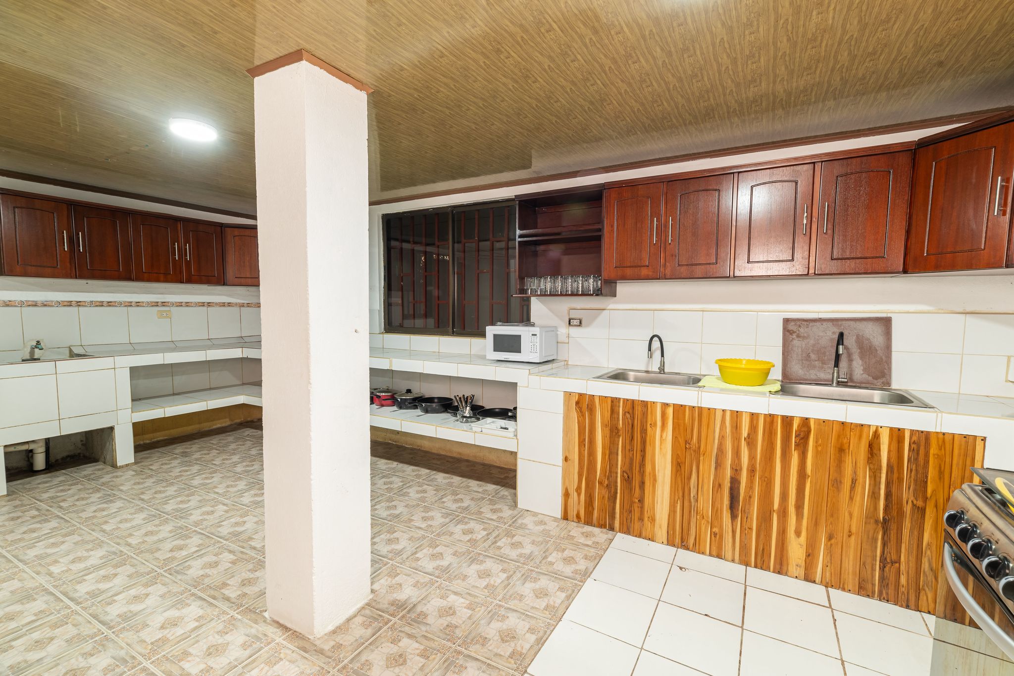 • Large kitchen designed to serve groups – industrial sinks, expansive countertops, and abundant storage