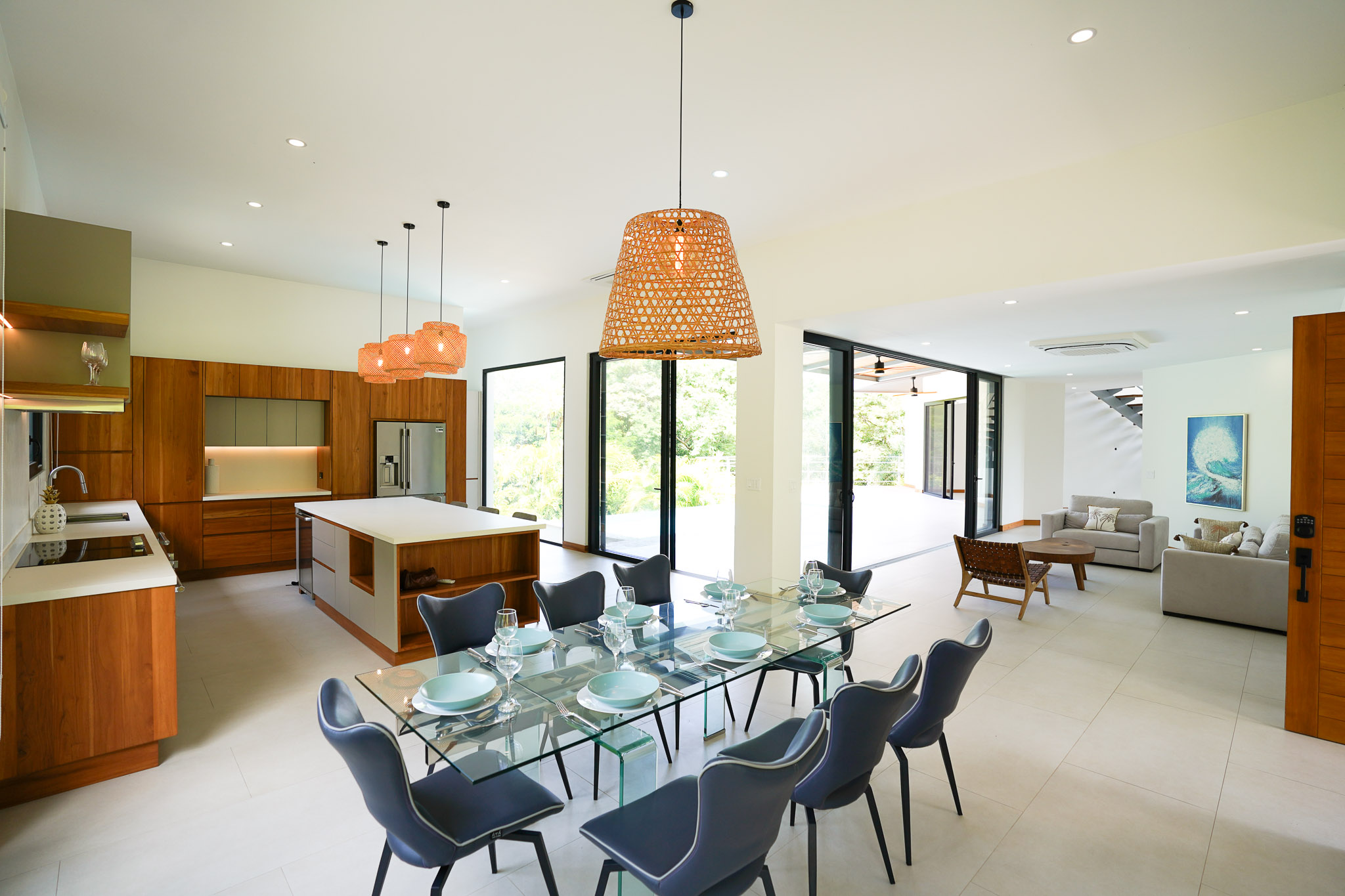 Floor-to-ceiling glass doors that flood the interiors with natural light