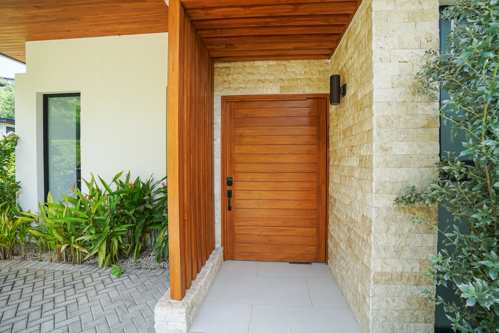 High ceilings, natural stone, and sustainable local wood accents