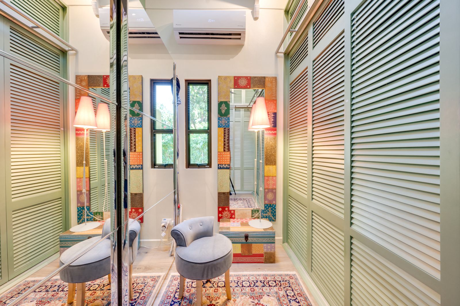 Multiple wall-unit A/C systems and ceiling fans