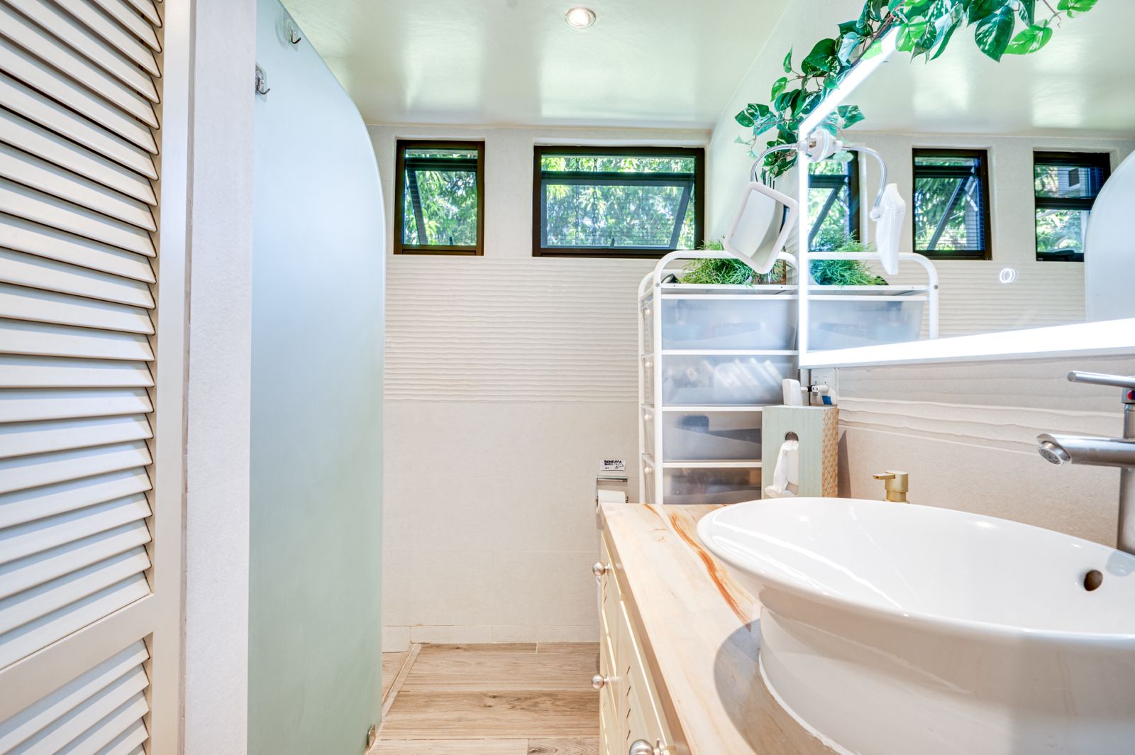 On the main level, both bathrooms feature modern finishes, including a jet-massage shower for a spa-like experience at home.