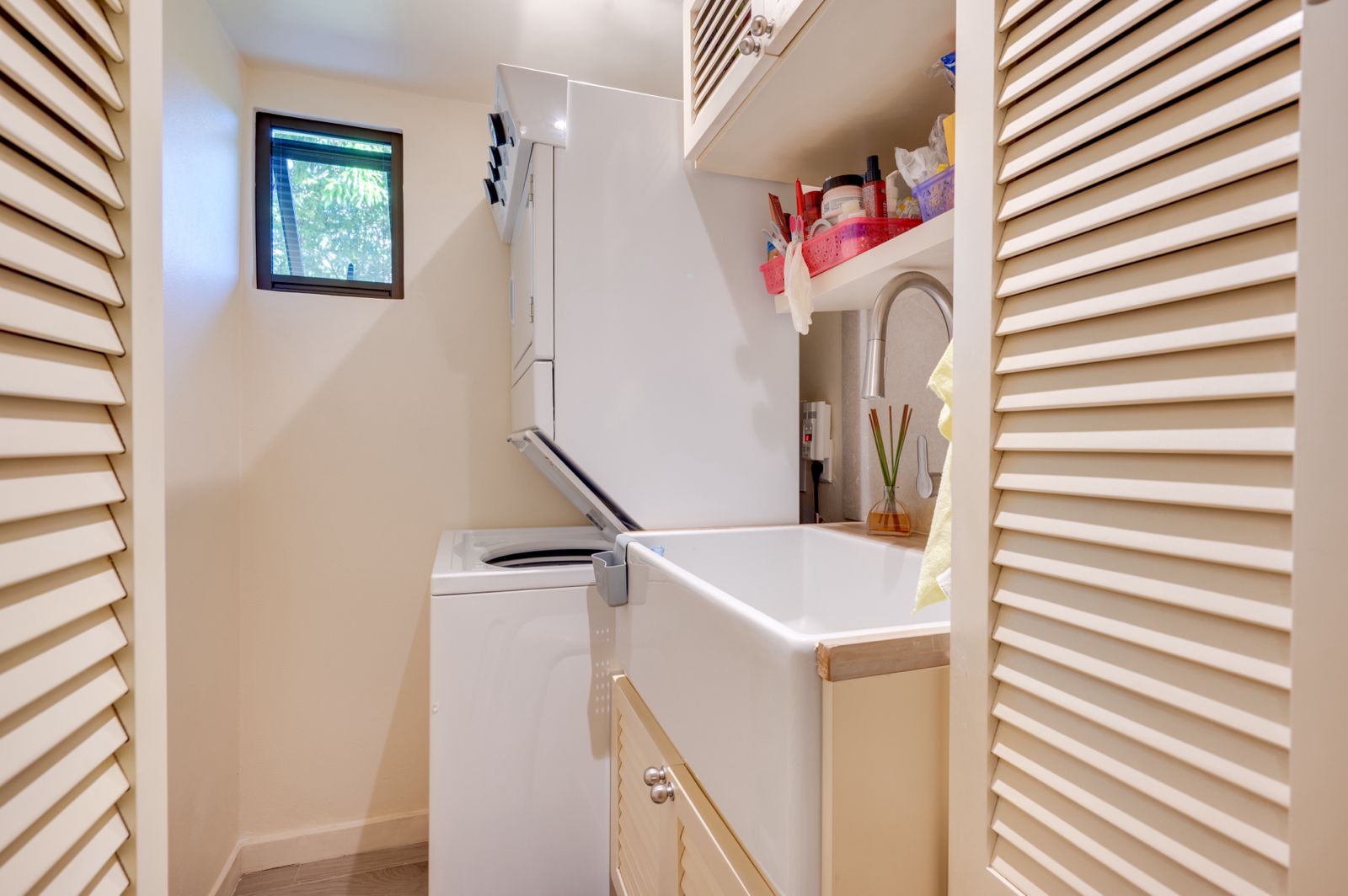 Large laundry room with storage